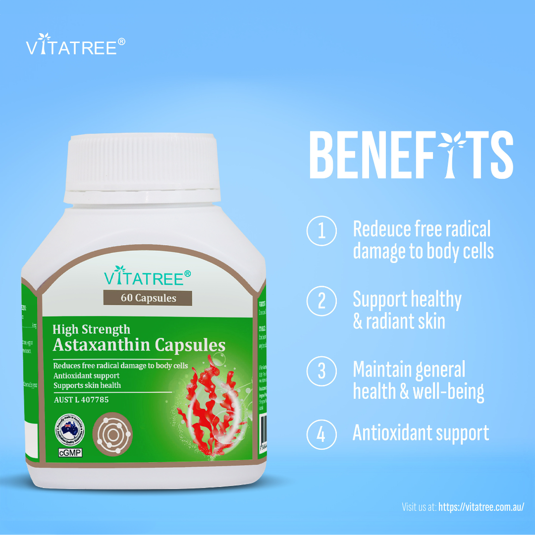 Beyond its skin benefits, Astaxanthin is acknowledged for its potential to support joint health, eye health, cardiovascular function, and immune system response, making our Vitatree High Strength Astaxanthin a comprehensive supplement for your overall well-being.
