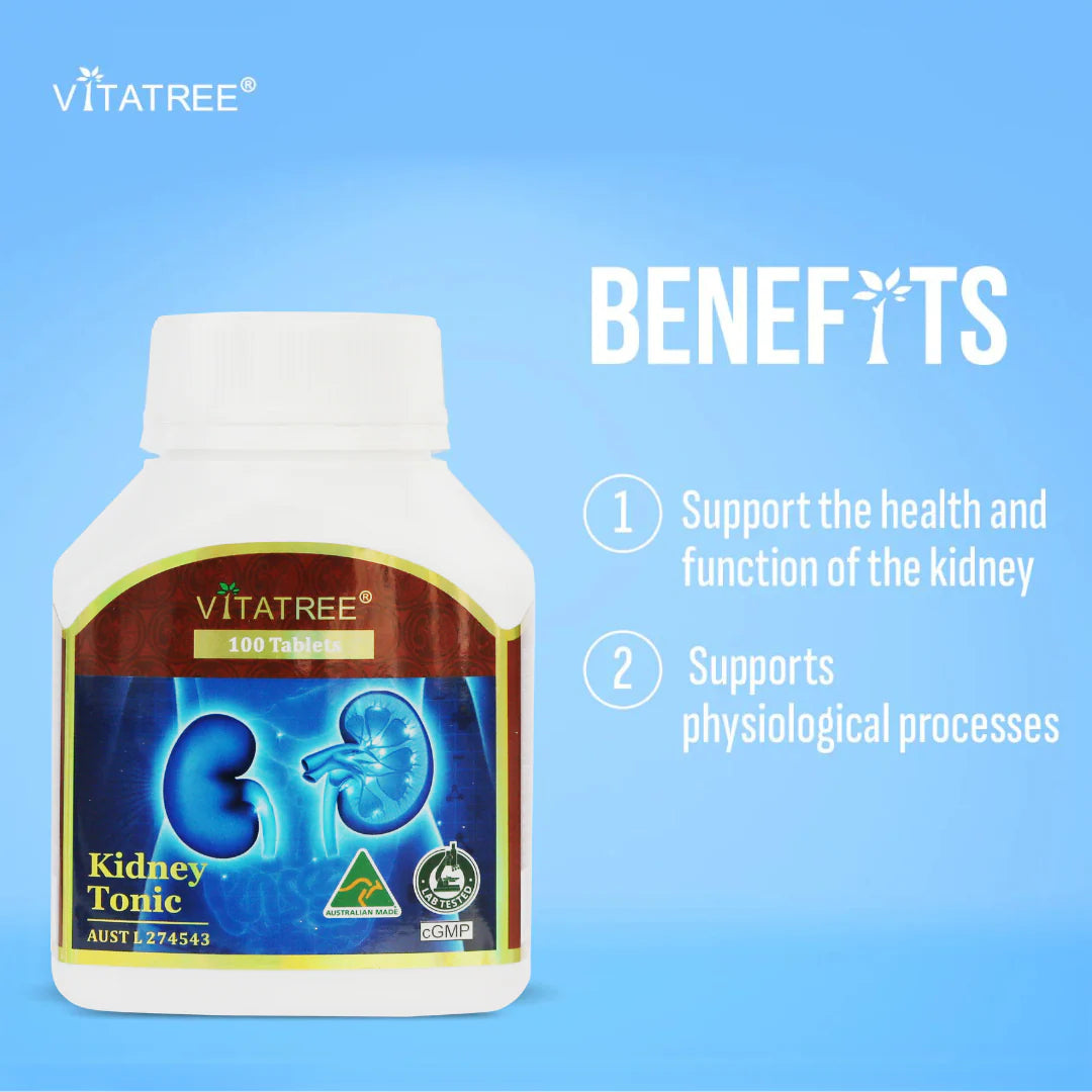 Vitatree Kidney Tonic 100 Tablets is a unique herbal formula complex, which is ideal for non-specific problems of the kidneys or gallbladder, lower back pain, and increasing energy and strength. The complex contains Cordyceps Sinensis, which is traditionally used in Chinese Medicine to support the health and function of the kidney and lungs. It is also proven that can assist with sore and weak lower back and extremities.